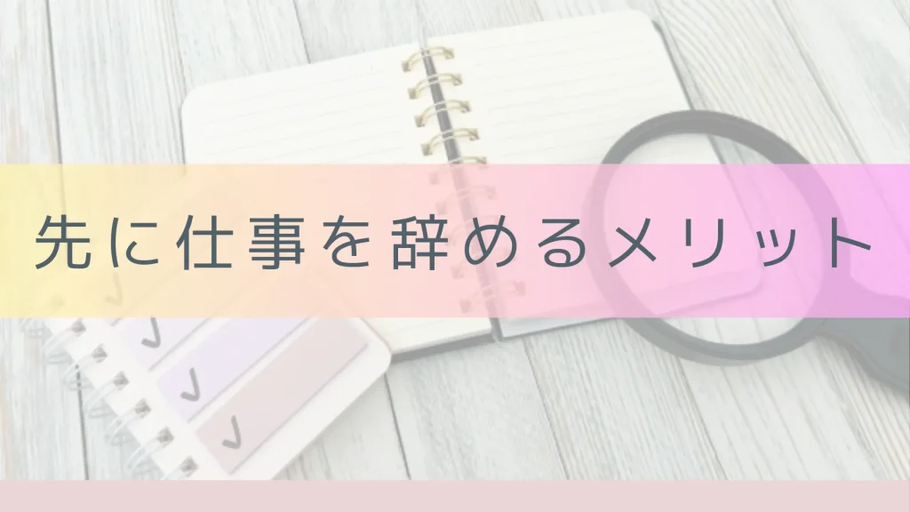 先に仕事を辞めると、心穏やかに過ごせるようになります。仕事のストレスが無くなるからです。仕事を辞めれば、嫌な先輩や上司に会わなくていい、ノルマや膨大な業務量に追われる必要もない環境です。次の仕事までに間が空けば、新しい環境でのストレスもありません。
