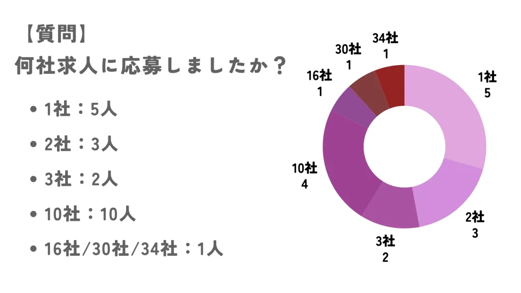 今回のアンケートでは、求人への応募数の中央値は10社でした。