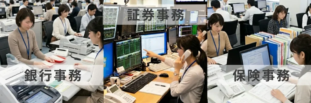 ここでは、銀行事務・証券事務・保険事務の仕事内容を紹介します。